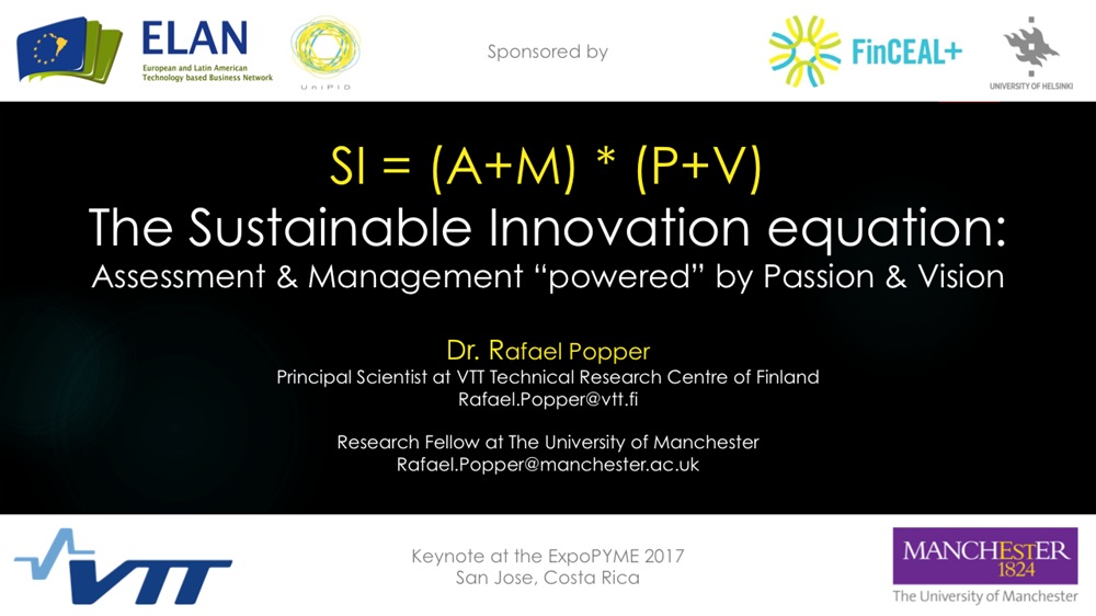 Dr Rafael Popper - CASI project partner from the University of Manchester and Principal Scientist at VTT Technical Research Centre of Finland - was invited to give a 2-hours keynote, in the EXPOPYME (i.e. EXPO-SMEs) in the context of a large international event of the ELAN Network in Costa Rica, on how to successfully manage sustainable innovations.